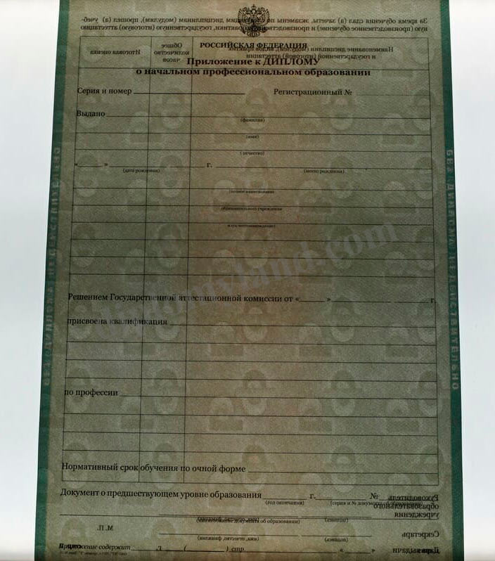 - можем изготовить диплом об окончании ПТУ современного образца или образца времен СССР.